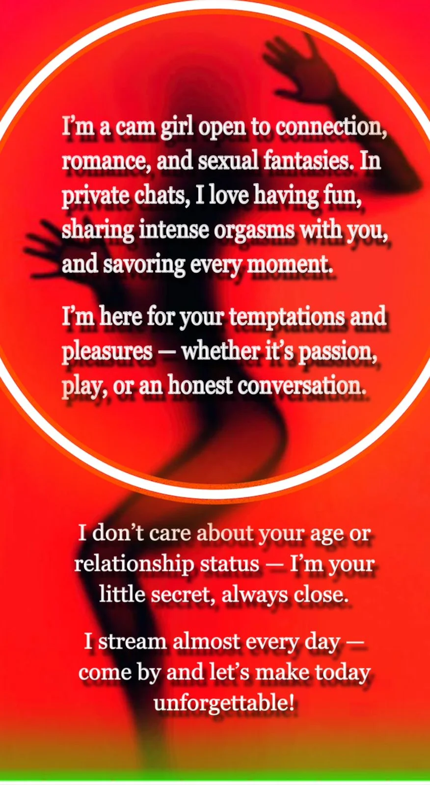 โ•”โ•.โ˜ฝโ˜†โ˜พ.โ•โ•โ•โ•โ•โ•โ•โ•โ•โ•โ•— My Room Rules โ•šโ•โ•โ•โ•โ•โ•โ•โ•โ•โ•.โ˜ฝโ˜†โ˜พ.โ•โ• Ask nicely! Please, donโ€™t be rude! This is my job, let me do it with passion, not with obligation, you are not my boss, you are my partner in criminal pleasures, ok? Be REAL because this is a real turn on! Be present and talk to meโ€ฆ Iโ€™m sapiosexual! And the last but not the least: Letโ€™s share some fun together!