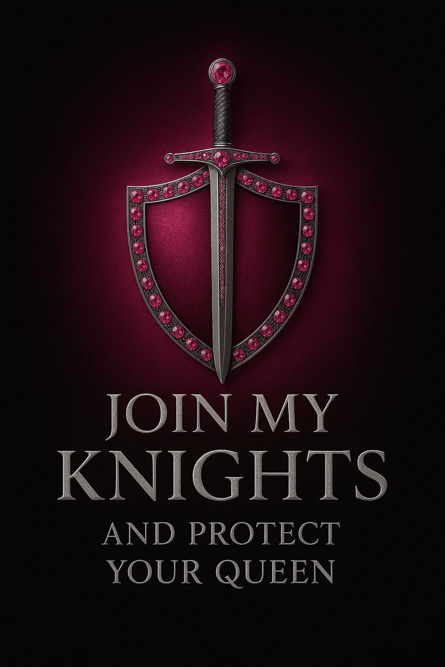Becoming one of my Knights means more than a title — it’s a vow of loyalty, devotion, and protection to your Queen. When you accept this honor, you promise to stand by me in my reign: ⚔️ Defend your Queen — support me in the room, keep the energy high, and make my throne shine. 💎 Show your loyalty — tip generously to prove your devotion and earn your armor of respect. 🔥 Follow my commands — a true Knight always obeys his Queen’s words without hesitation. 🌹 Protect the realm — treat the Queen and her court (the room) with class, courtesy, and passion. Only the brave and loyal may wear the title of Knight of the Queen. Are you worthy of kneeling before your Queen and pledging your loyalty?